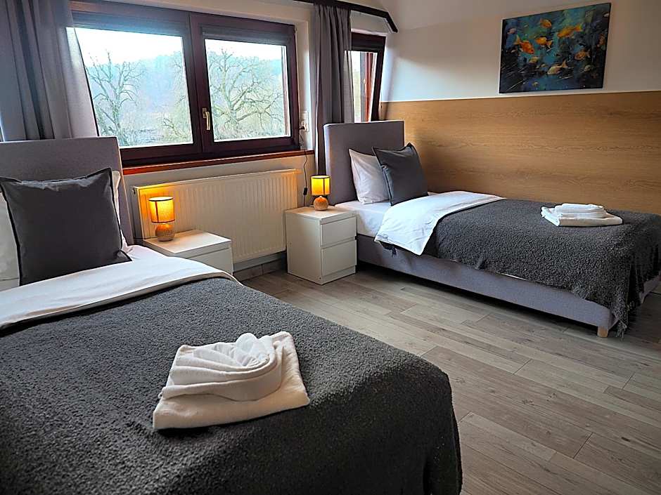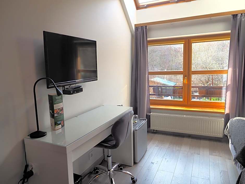 The twin room provides a wardrobe, an electric kettle, as well as a private bathroom featuring a bath or a shower and a hairdryer. This twin room features a carpeted floor, heating, a flat-screen TV and garden views.
