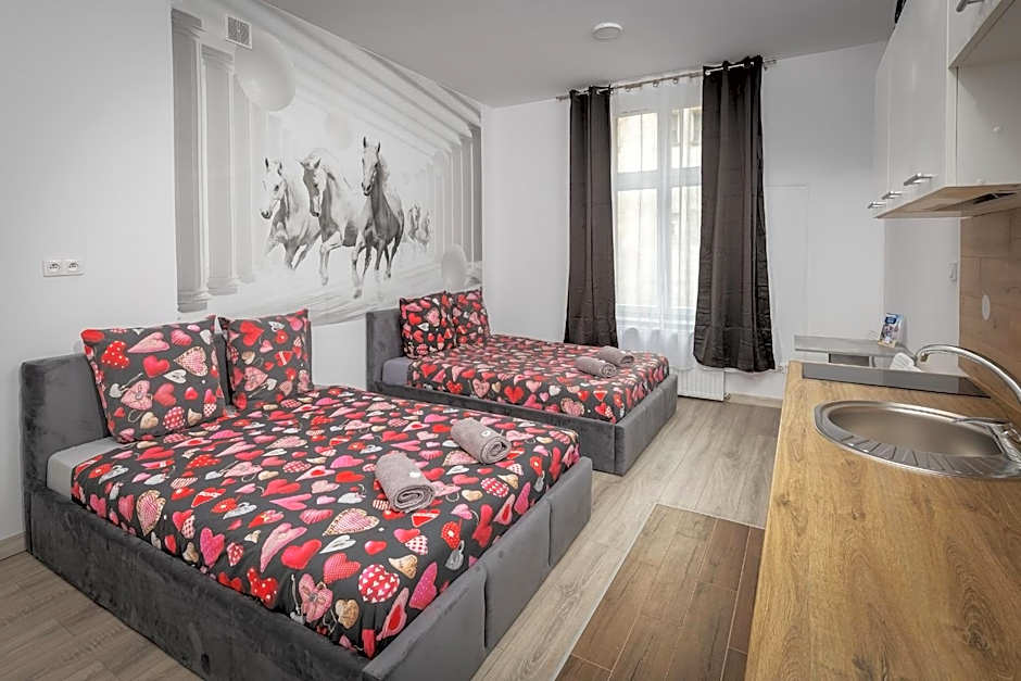 Featuring a private entrance, this apartment also consists of 1 bedroom, a seating area and 1 bathroom with a walk-in shower and a hairdryer. In the kitchen, guests will find a stovetop, a refrigerator, kitchenware and a microwave. Among the room amenities are soundproof walls, a tea and coffee maker and a dining area as well as city views. The unit offers 2 beds.