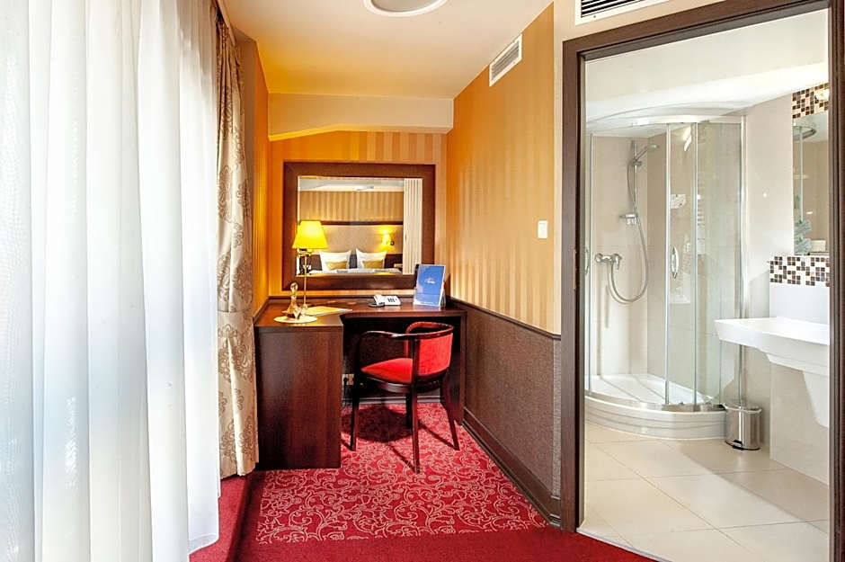 This is an excellent hotel that far exceeds its 3 star rating. The hotel is very smart and the reception staff are very welcoming, cheerful and willingly helpful. I would stress that the reception team are way ahead of other hotels in Poland and other countries we have visited. Our room was spotlessly clean, smart, and the bathroom was superb. The air conditioning worked very well during the hot weather. The free WiFi connection was very fast. We loved the prints of Kraków hanging in the sixth floor corridor. We would have loved one in the bedroom! These beautiful prints are on-theme with the locality - not always the case in other hotels. The breakfast was superb and generous.