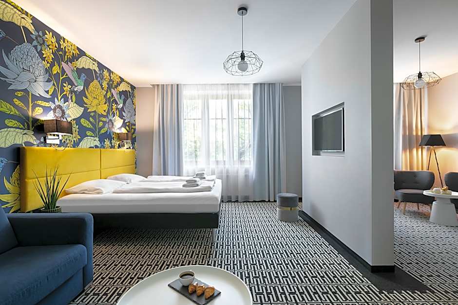 Apartament Junior Suite room has a seating area, mini-bar and satelite TV. There is an option to request 2 single beds instead of 1 double bed- the request must be approved by the property. There is a private bathroom in the room. The room has a sofa bed for additional guests - i.e. more than 2 people. There is a safe, kettle and air conditioning.