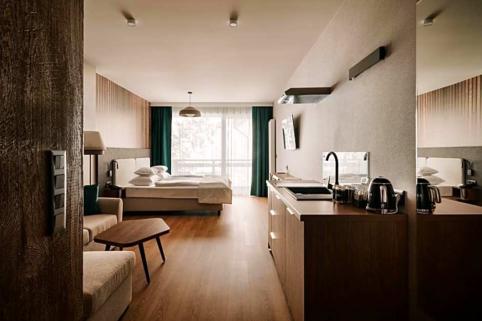 Guests will have a special experience as the apartment provides a sauna. This apartment consists of 1 living room, 1 separate bedroom and 1 bathroom with a shower and free toiletries. Meals can be prepared in the kitchenette, which is equipped with a stovetop, a refrigerator, kitchenware and a tea and coffee maker. A seating area with a flat-screen TV, soundproof walls and a balcony are provided in this apartment. The unit offers 2 beds.