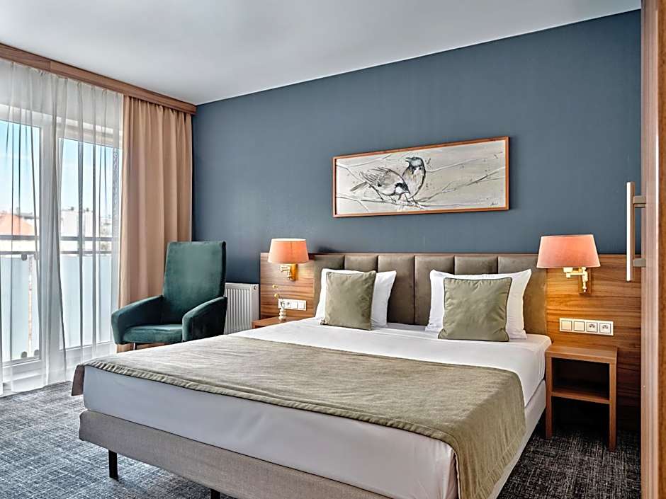 The Arche Hotel Puławska Residence offers Business Double Rooms and Standard Double Rooms. Both room types have a double bed, with the Business Double Room being larger at 377 sqft compared to the Standard Double Room at 248 sqft. Smoking is not allowed in either room type. Both room types can accommodate 2 adults and 1 child.