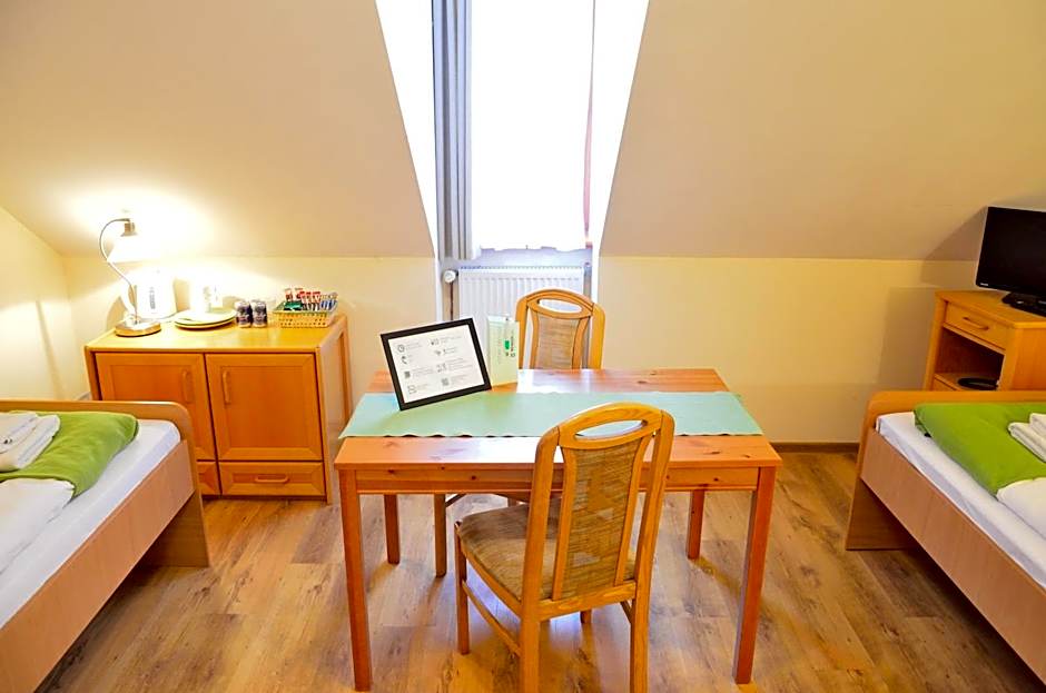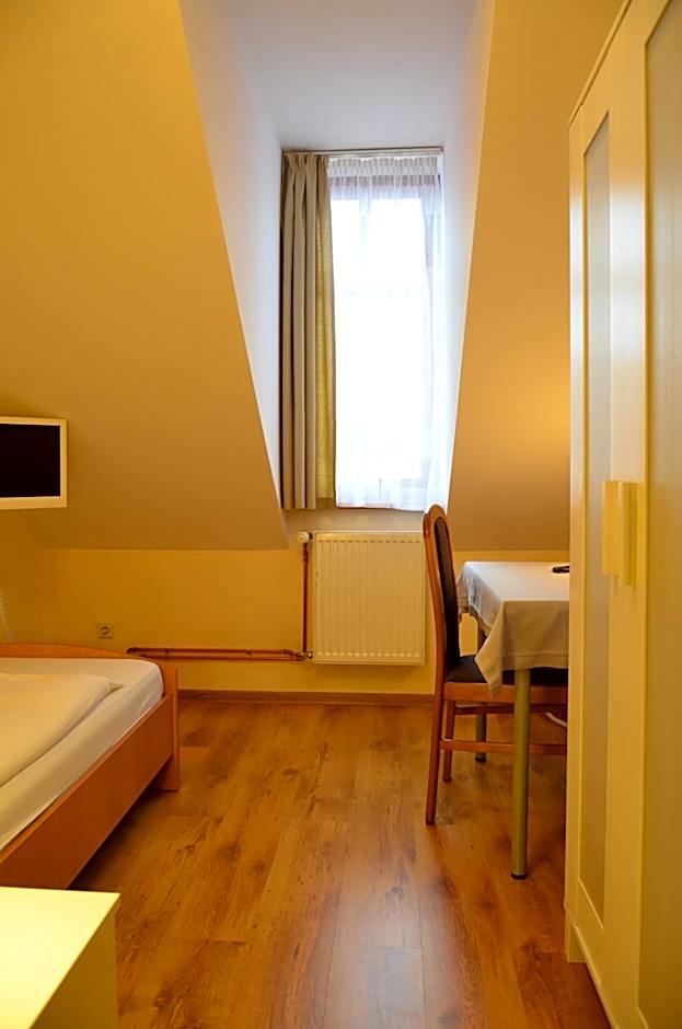 Room on the 3rd floor (please note there is no elevator) with a slanted ceiling and a view of the Oder River and the city.