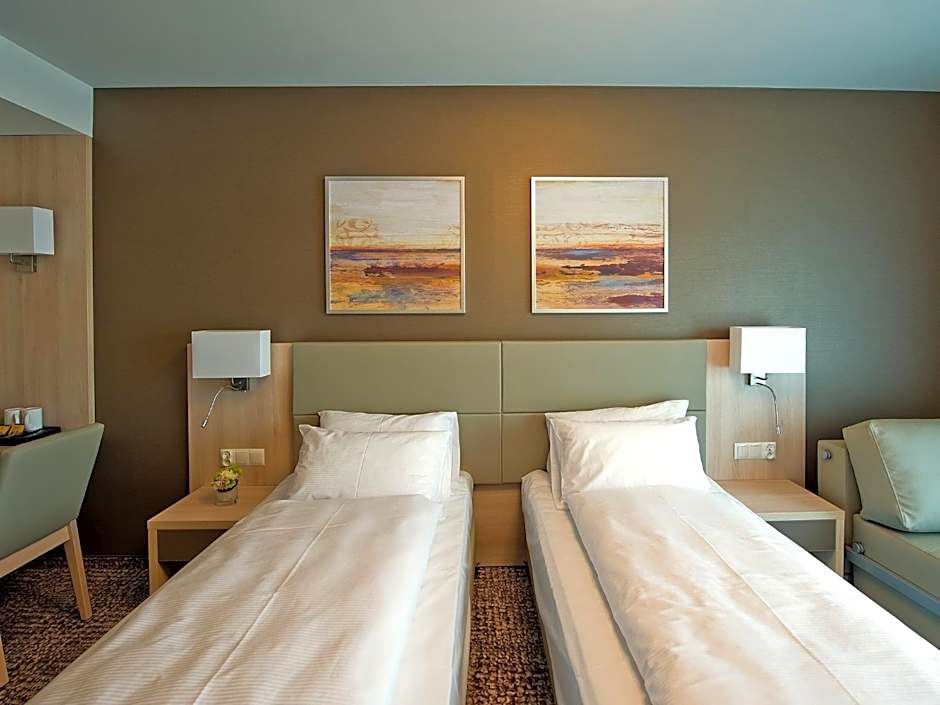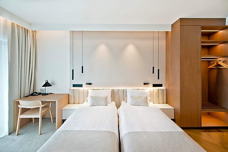 The twin room features a mini-bar, a tea and coffee maker, a wardrobe, a safe deposit box and a TV. The unit has 2 beds.