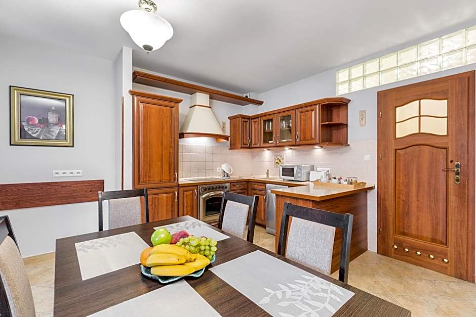 Apartment in Villa Motylek, at Makuszyńskiego 14 Street. It has 2 separate bedrooms, living room with a fireplace, a kitchenette, a bathroom. 1 parking space available.