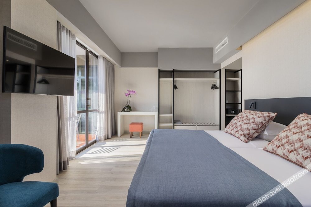 The hotel offers double or twin rooms with garden view, twin rooms with sea view, and superior twin rooms with balcony. All rooms can accommodate 2 adults, are non-smoking, and have 2 twin beds. The room sizes range from 205 sqft to 291 sqft.
