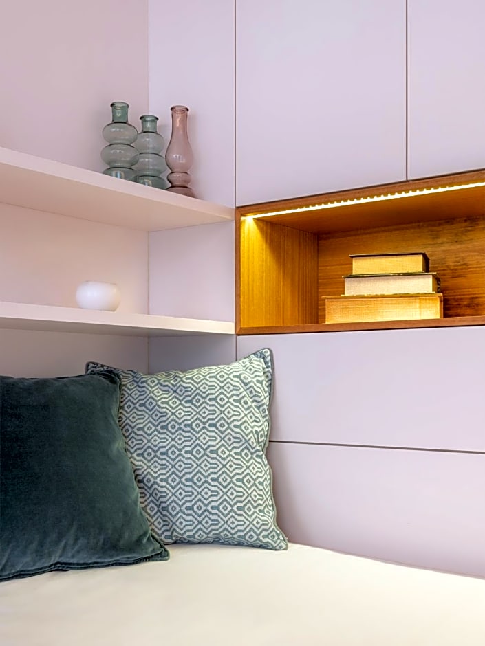 Facing a pleasant courtyard, the living room is prepared with a sofa bed, which is in the masonry area of the building. The apartment also offers a bedroom with a very welcoming double bed, as well as a fully equipped kitchen with stove, dishwasher, fridge, microwave, oven, kettle and a Nespresso coffee machine. The bathroom blends the use of traditional materials with a contemporary language in order to give answers for the demands of today.