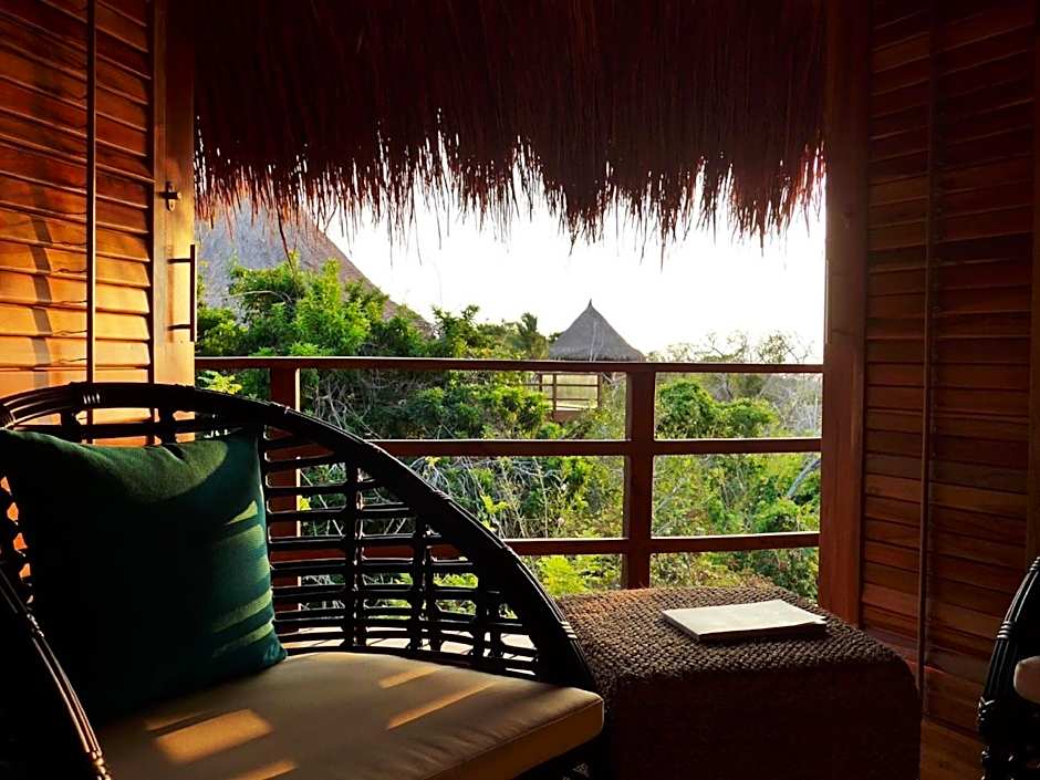 As opções de acomodação variam de Bangalôs na Árvore e Bangalôs com vista para o mar e piscinas privativas a Casas maiores e Grandes Bangalôs, alguns com capacidade para vários hóspedes, ideais para grupos ou famílias. Estadas que aceitam animais de estimação são bem-vindas mediante taxa adicional. Para eventos maiores, serviços de transfer, instalações para reuniões/banquetes e saunas estão disponíveis mediante taxa adicional. Conveniências no local incluem estacionamento privativo, Wi-Fi, elevador e um jardim que completa a vibração tropical.