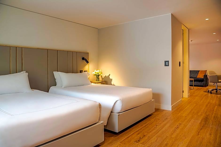 Uma das opções de quarto de destaque no NH Bogota Pavillon Royal é a Suíte Júnior Familiar, que oferece um espaço amplo e confortável para famílias ou grupos maiores. Com acomodações para até 4 adultos, esta suíte dispõe de duas camas king-size e um sofá-cama, proporcionando espaço suficiente para relaxar e garantir uma estadia tranquila para cada hóspede. O tamanho generoso da suíte e as comodidades bem equipadas fazem dela uma escolha ideal para famílias ou grupos de amigos que viajam juntos, oferecendo uma combinação harmoniosa de conforto, conveniência e valor para uma estadia inesquecível em Bogotá.