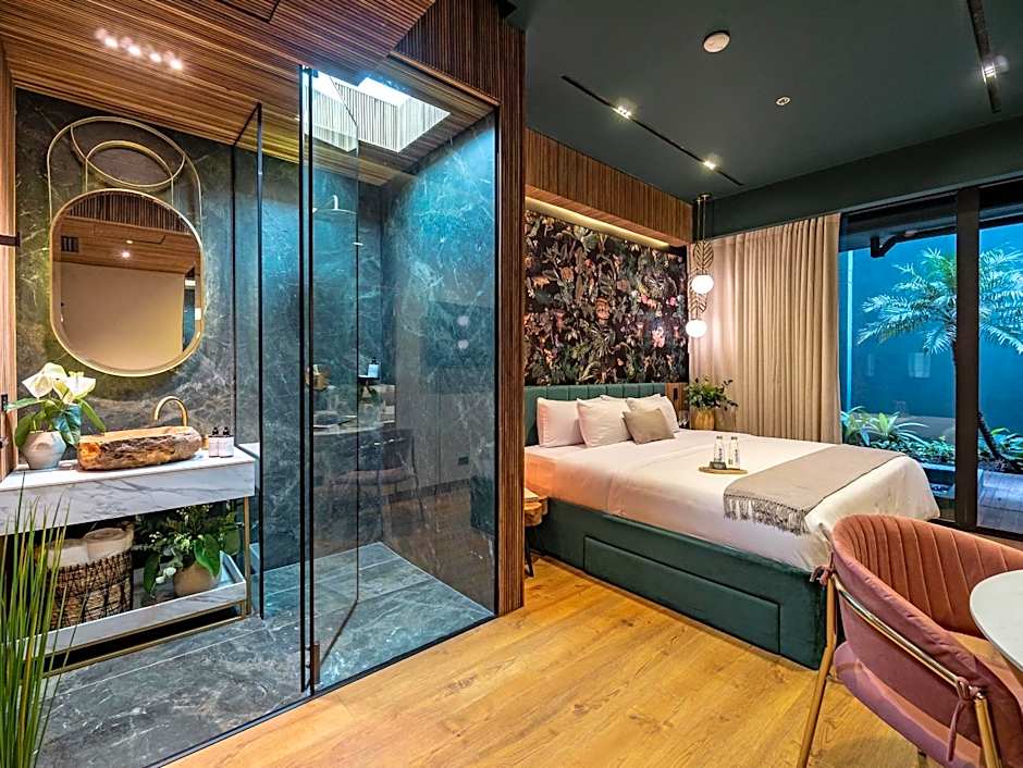 As opções de quarto variam do Deluxe com banheira de hidromassagem ao Premium com Jacuzzi, cama King e varanda, com opções adicionais como Superior King com varanda ou vista para a cidade e uma Suíte. Muitos quartos contam com varandas ou terraços privativos, e alguns oferecem vista para a cidade ou para a rua, oferecendo uma base elegante e confortável para viajantes que buscam uma mistura de romance e praticidade.