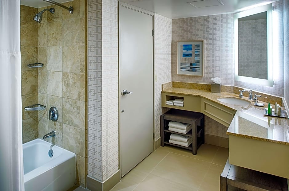 O Hilton San Diego/Del Mar oferece uma variedade de tipos de quarto para atender às necessidades de todo viajante. Desde quartos familiares espaçosos com duas camas queen até suítes luxuosas, há opções para todos. Quer esteja viajando com um grupo ou desfrutando de uma escapada romântica a dois, você encontrará acomodações confortáveis neste resort. Cada quarto é cuidadosamente decorado e projetado para oferecer uma atmosfera relaxante, garantindo uma noite de sono tranquila. Aprecie as vistas deslumbrantes dos quartos executivos ou relaxe nas suítes espaçosas. Seja qual for o quarto escolhido, você desfrutará de conforto e conveniência excepcionais durante sua estadia.