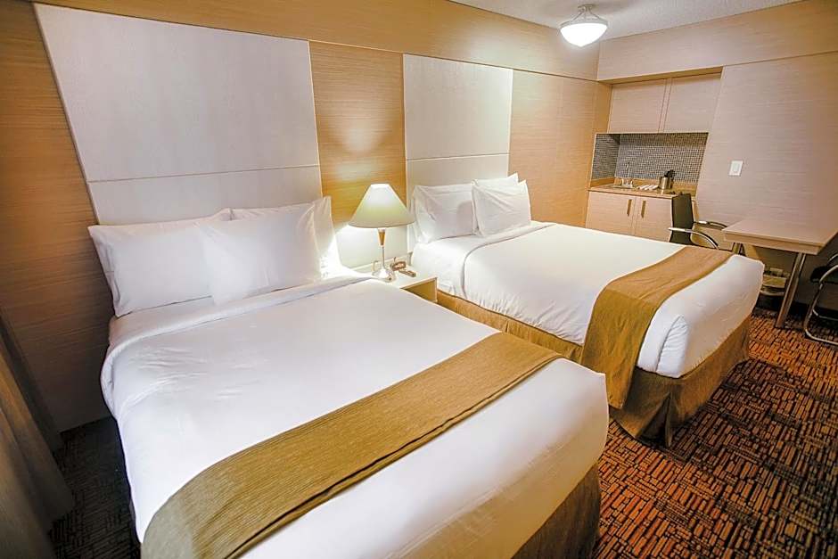 As comodidades incluem piscina ao ar livre (gratuita), Wi-Fi (gratuito) e academia (gratuita). Um centro de negócios (gratuito) oferece conveniência para o trabalho, enquanto recepção 24 horas e quartos para não fumantes mantêm tudo simples. O conforto é aprimorado por ar-condicionado, kitchenette com utensílios de cozinha, banheira e produtos de higiene gratuitos. Estacionamento privativo (taxa extra) e estacionamento no local (taxa extra) estão disponíveis, e serviço de traslado (taxa extra) juntamente com transfer para o aeroporto (taxa extra) oferecem opções de transporte.