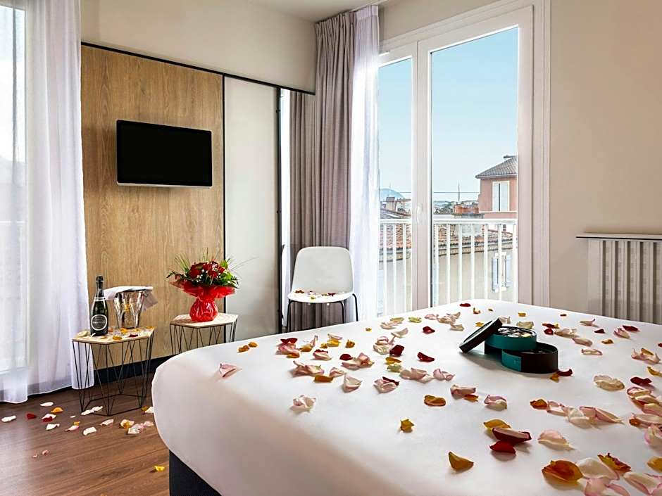 Há uma variedade de tipos de quarto para atender a diferentes grupos: Deluxe (cama de casal / duas camas de solteiro), Standard (1 cama de casal), Superior (2 camas de solteiro) e Quarto quíntuplo. Cada opção fornece uma base confortável para explorar Millau, com configurações pensadas para se ajustar a diferentes arranjos de viagem.