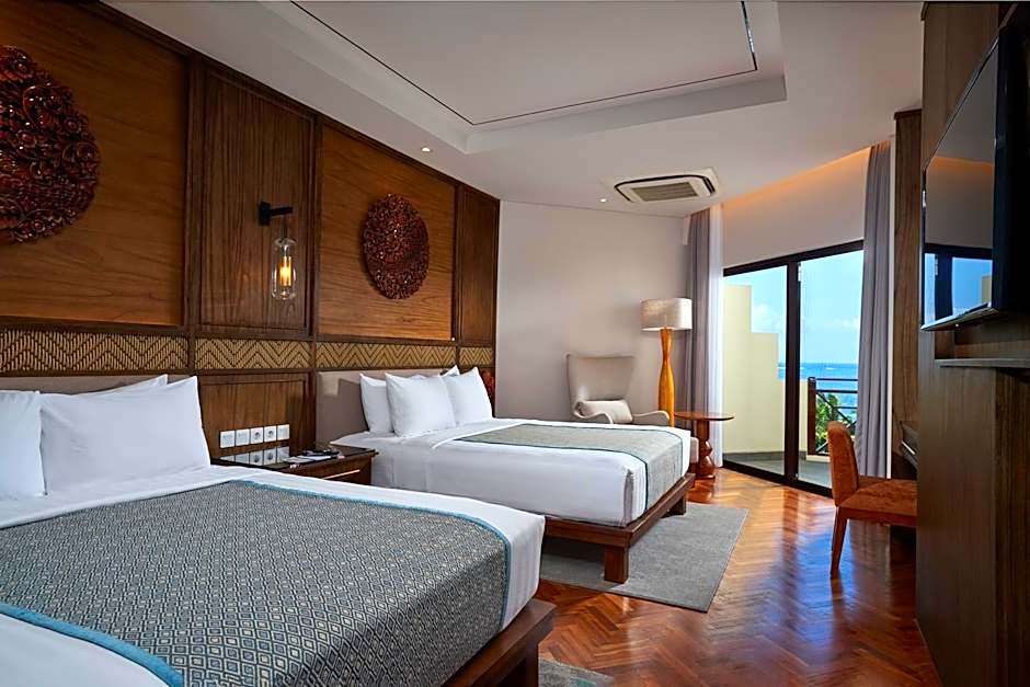 Grand Mirage Resort & Thalasso Bali é um refúgio à beira-mar cinco estrelas em Nusa Dua, Bali, que combina diversão para a família com luxo em estilo resort. Os destaques incluem um parque aquático gratuito, um clube infantil gratuito, um toboágua e uma área de praia privativa para os hóspedes, além de uma piscina externa ladeada por terraços ensolarados. O café da manhã é servido no local, facilitando as manhãs antes de um dia de aventuras na ilha.