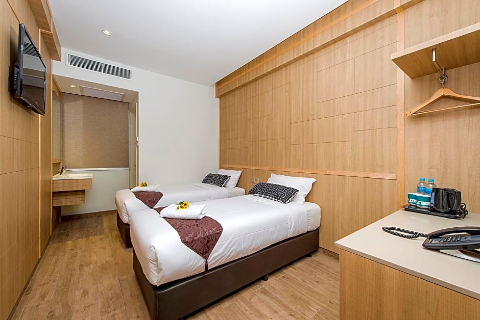 This air-conditioned twin room is fitted with a satellite LED TV, mini refrigerator and a safe. The private bathroom includes shower facilities and a hairdryer.