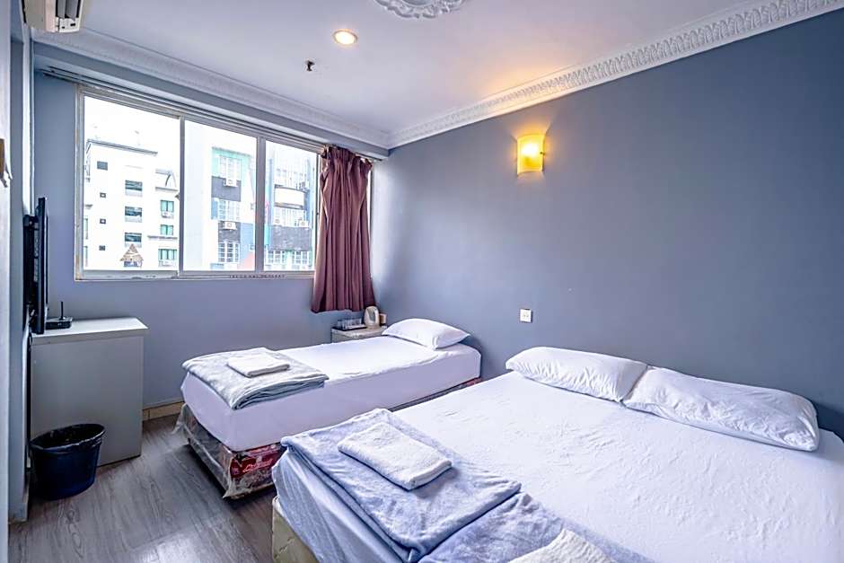 Experience the spacious Grand Triple Room with a twin and queen bed, accommodating 3 adults and 1 child. Enjoy amenities such as air conditioning, free toiletries, and a private bathroom for a comfortable stay.