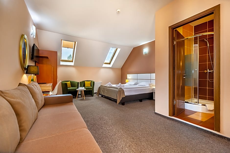 Suite with a work desk, a flat-screen TV and a mini-bar. The suite features a bathroom with a shower and provides mountain views. A separate living room with a sofa bed is provided.