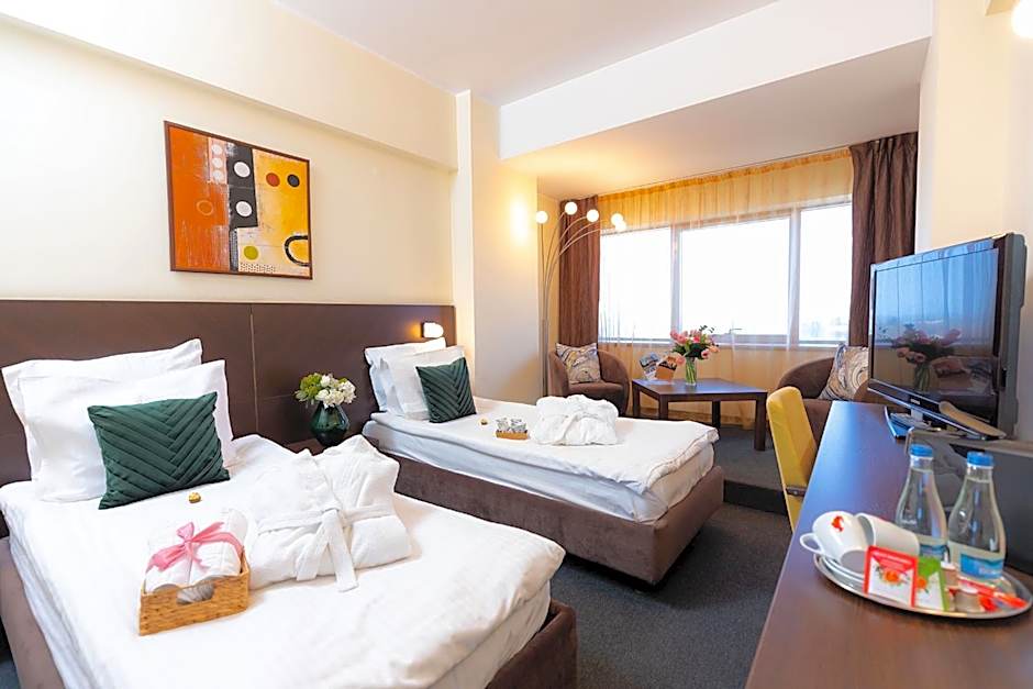 Nestled in Galați at Aleea Meteo 4, this 4-star retreat blends contemporary comfort with practical perks after a day of exploring. Free on-site parking and complimentary Wi-Fi set the scene for easy arrivals, while an indoor pool (heated and adults-only) invites a quiet dip. The outdoor pool, spa, sauna, and massage carry extra charges, but a 24-hour front desk and non-smoking rooms keep things smooth and convenient. For sunny moments, a bar, terrace, sun deck, and playground await, along with kid-friendly options and a free tennis court and garden view to savor.