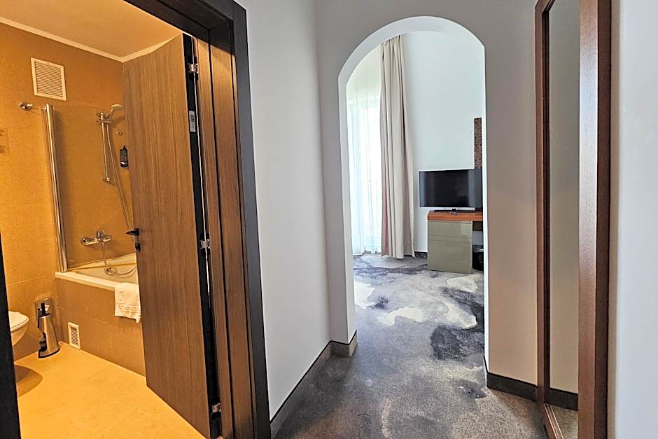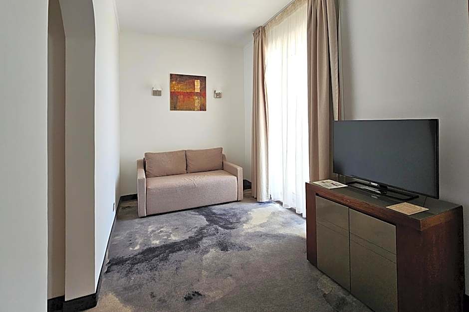 This air conditioned room features a living room with a sofa bed, bathroom with bathtub, mini-bar, hair dryer, cable TV, international access phone, WiFi and safe. This room offers spa access (indoor pool, sauna and jacuzzi).