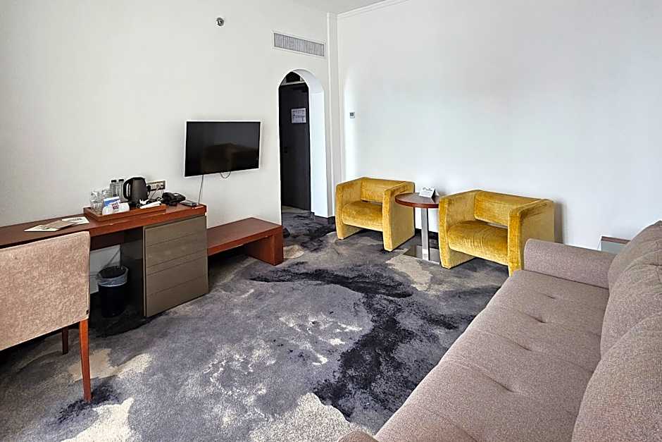 Equipped with twin beds (can be merged or split), an open living room with an extendable sofa, bathroom with bathtub, mini-bar, hair dryer, air conditioning, cable television, international access phone, Internet, safe. This room doesn't include Spa Access!