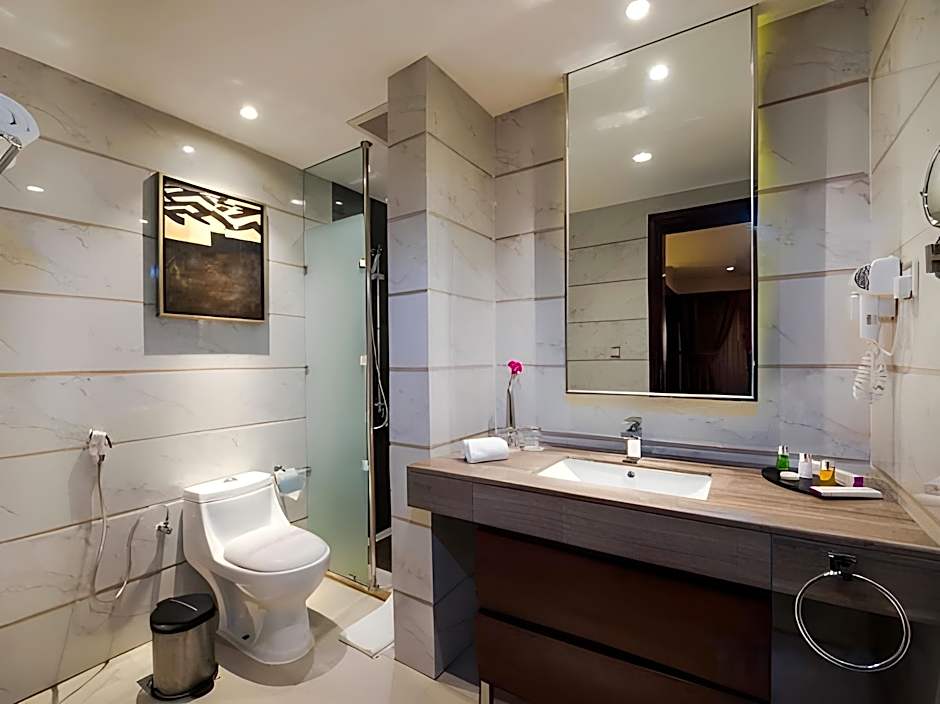 This spacious suite consists of 1 living room, 1 separate bedroom and 2 bathrooms with a walk-in shower and free toiletries. The suite's kitchen is available for cooking and storing food. The air-conditioned suite provides a TV, a mini-bar, a tea and coffee maker, a seating area as well as city views. The unit offers 1 bed.