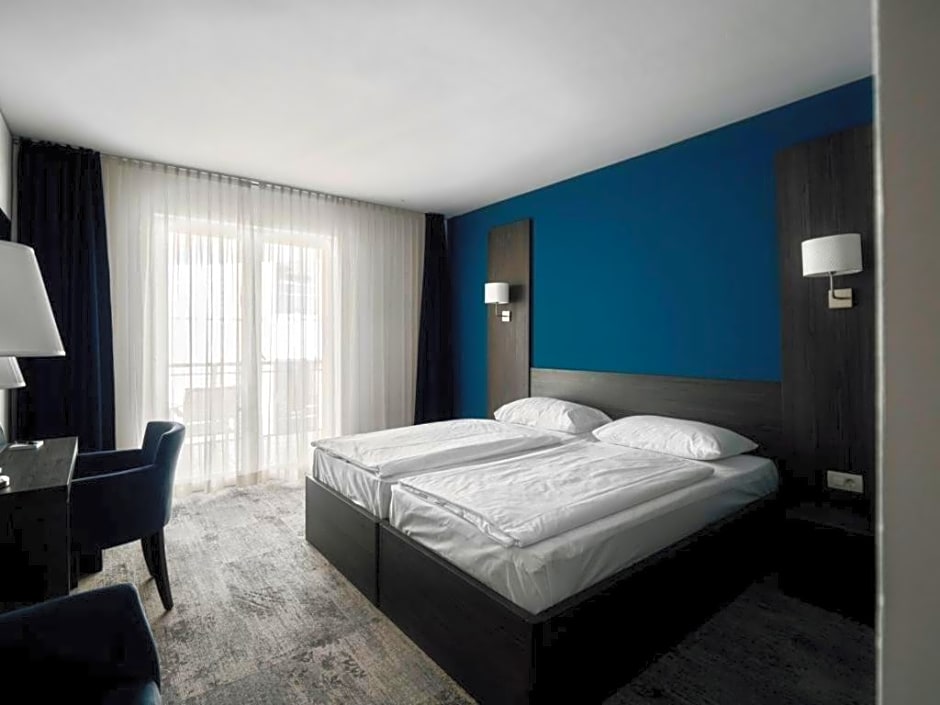 Double room Comfort is 269 square feet and includes a king-size bed 150-183 width plus balcony, desk, hairdryer, and safe.