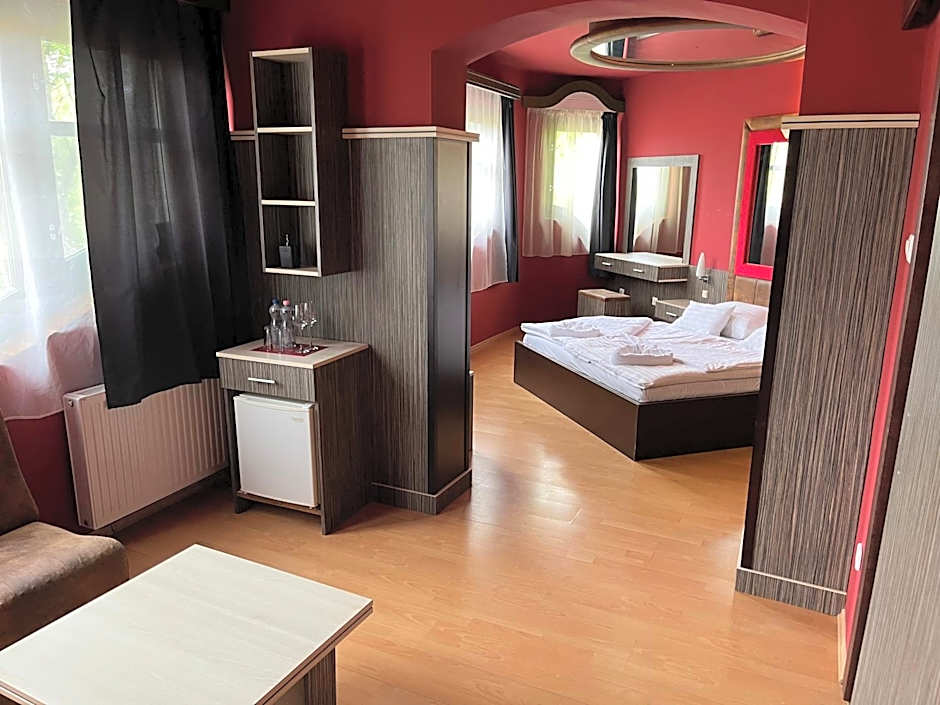 A kitchenette equipped with a refrigerator, a microwave and a toaster is available for cooking and storing food. This double room is air-conditioned and features a TV with streaming services, a seating area and heating.