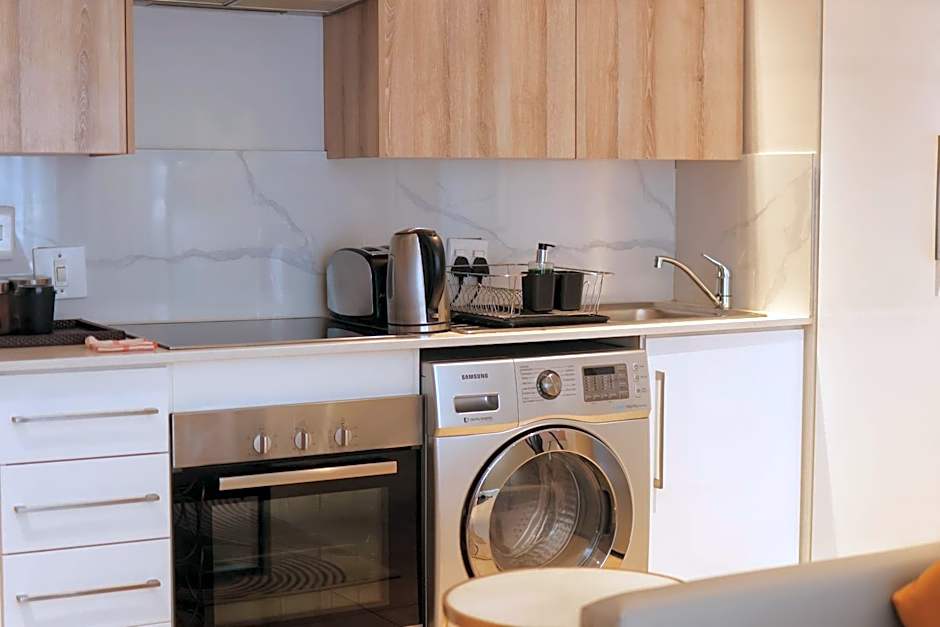 With contemporary design, this modern and spacious studio comes with a fully equipped kitchen and a bathroom with shower. It includes a washing machine, a flat-screen TV, a desk, and air conditioning.