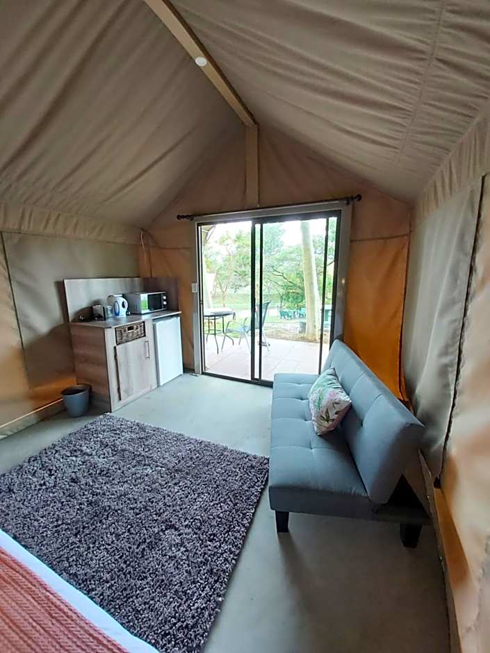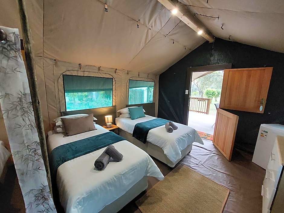 Guests will find a refrigerator, kitchenware, a microwave and a toaster in the well-fitted kitchenette. The tent also includes a barbecue. The tent features air conditioning, a seating area, a balcony with lake views as well as a private bathroom boasting a shower. The unit has 3 beds.