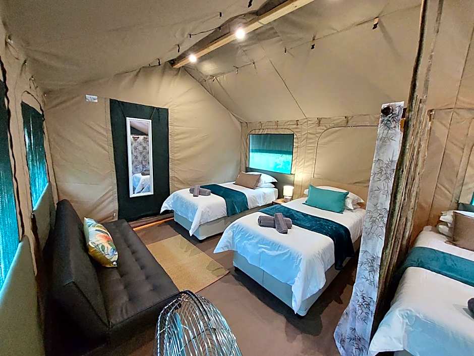 This tent has a seating area, a patio, garden views and a private bathroom. The unit has 5 beds.