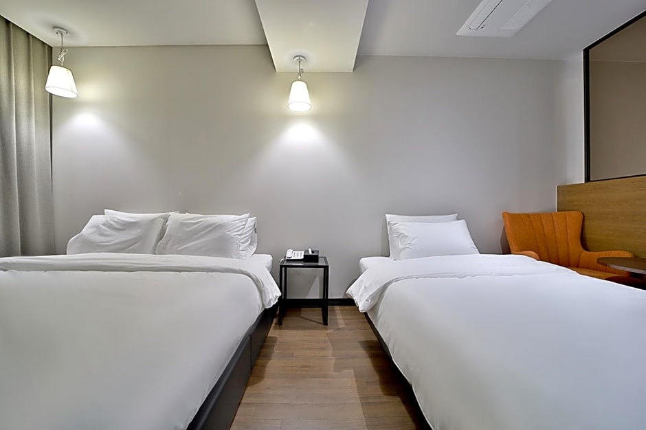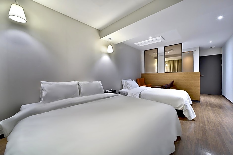 Busan Seomyeon Hound Hotel offers a variety of room types including Suites, Doubles, Twins, and Family Rooms. Smoking is not allowed in any of the rooms. The rooms can accommodate either 2 adults or 4 adults, and bed sizes range from Queen to Twin and room sizes vary from 194 sqft to 1141 sqft.