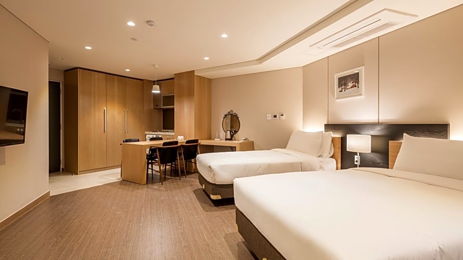 Offering free toiletries, this suite includes a private bathroom with a shower, a bidet and a hairdryer. The suite's kitchen, which has a refrigerator and an electric kettle, is available for cooking and storing food. The air-conditioned suite offers a flat-screen TV with cable channels, a washing machine, a dining area, a wardrobe as well as city views. The unit has 2 beds.