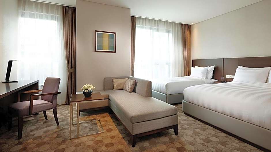 출장이나 장기 체류를 위한 비즈니스 센터와 회의/연회 시설은 추가 요금으로 이용 가능하며, 전용 주차장 및 구내 주차장도(모두 추가 요금) 제공됩니다. 결제는 현금과 아메리칸 익스프레스, 다이너스 클럽, JCB, 비자, 마스터카드, 마에스트로, 유니온페이 직불카드, BC카드, 유니온페이 등 카드 결제가 가능합니다. 객실 유형으로는 스탠다드 더블(Standard Room, Double), 스탠다드 트윈(Standard Twin Room), 디럭스 더블(Deluxe Double Room), 슈페리어 더블(Superior Double Room) 등이 있으며, 각 객실은 다양한 침대 구성으로 서로 다른 요구를 만족시킬 수 있습니다.