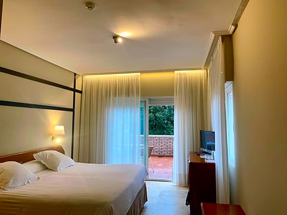 The double room provides air conditioning, soundproof walls, a terrace with garden views as well as a private bathroom featuring a walk-in shower.