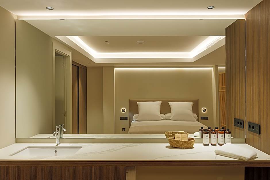 Elegant and bright, this 98 ft² double room is fitted with wooden floor and comes with a double bed, a lounge with a 49-inch curved smart TV and a 98 ft² terrace. The bathroom comes with a rainfall shower and bathrobes and slippers are included.