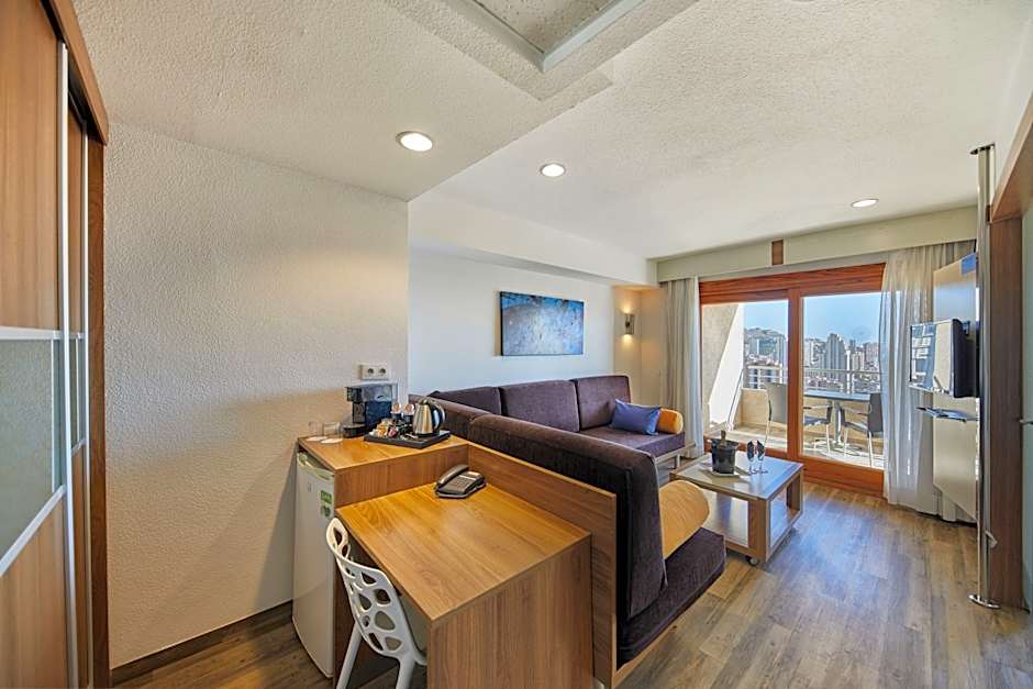 What types of rooms does Sandos Benidorm Suites offer?