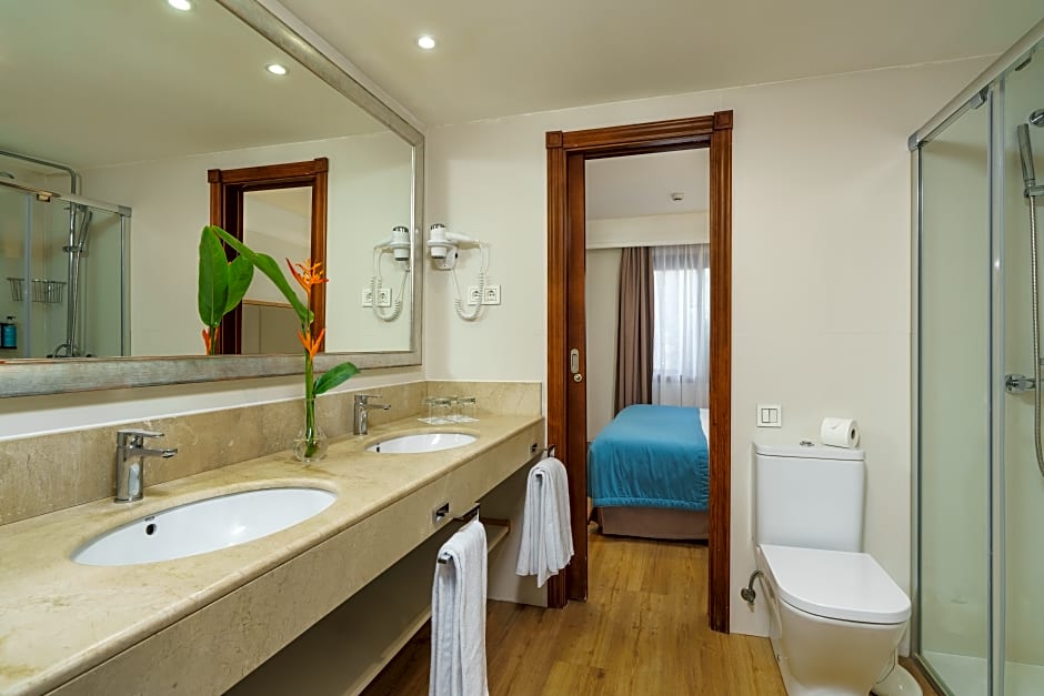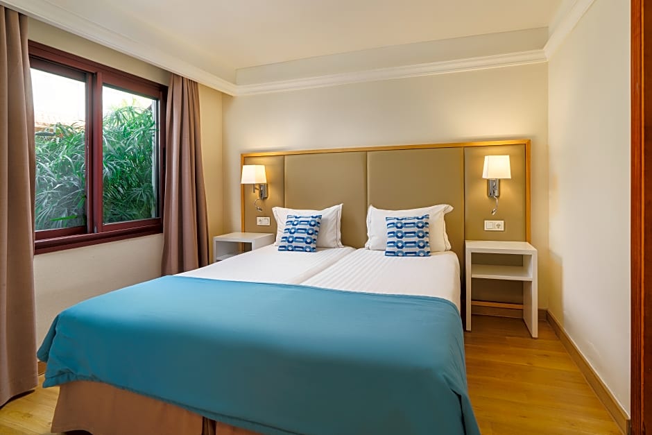 SUITE TWO BEDROOMS 4 ADULTS is 570 square feet and includes either a king-size bed 150-183 width or 2 single beds 80-130 width plus balcony, terrace, desk, satellite tv , hairdryer, and safe.