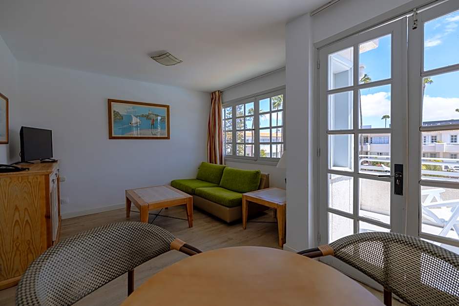 Cozy one-bedroom apartment with a garden view, air conditioning, and a private terrace. Sleeps 3 adults and 2 children, with twin beds and a sofa bed. Family-friendly and perfect for a relaxing getaway.