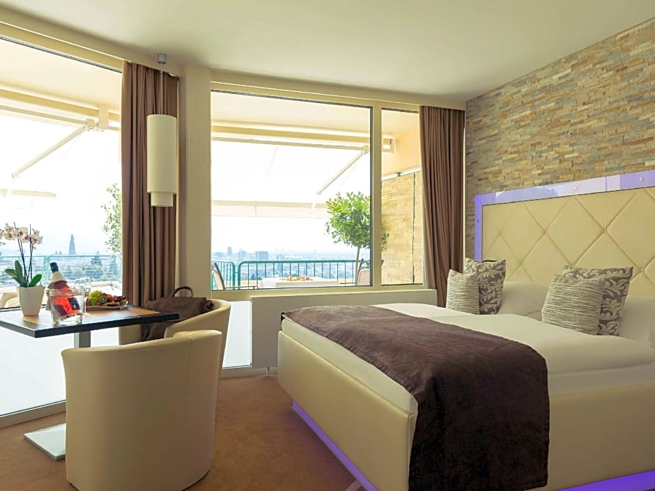 This room includes a free mini-bar set of drinks and snacks. It has a terrace with access to the hotel lounge.