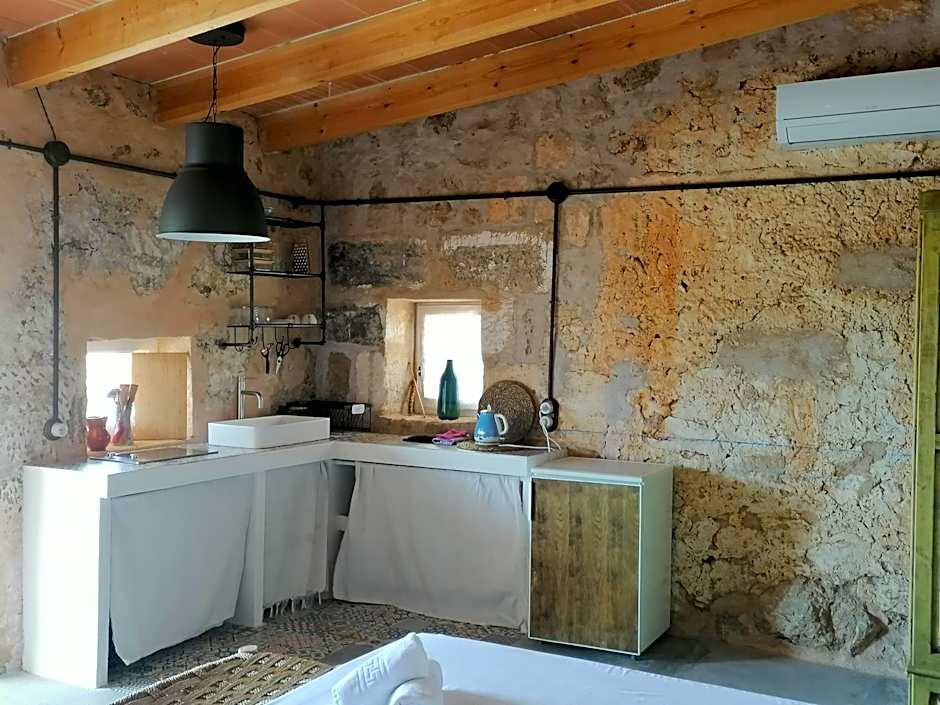 Very Idyllic place. You immediately wind down when you arrive. You live in harmony with sheep walking around the complex, a cat, there is olive and citrus trees. We had our own little house w kitchen, a fire place, and a patio. You return to the roots and can relax.