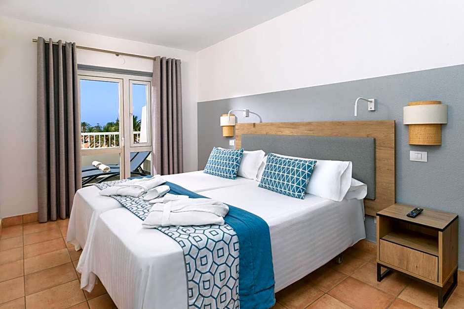 This air-conditioned apartment has a large terrace with sun loungers and views of the pool and garden. It includes 1 twin bedroom, a bathroom with a hairdryer and toiletries and a lounge with a TV. The kitchen comes with a ceramic hob, microwave and fridge.