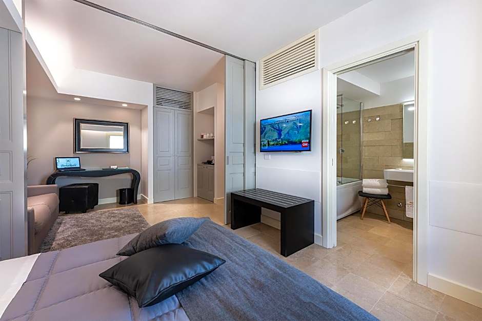 Accommodations span a variety of stylish options, including Deluxe Double Room with Terrace and Premium Junior Suite with Patio, plus several other suites and double rooms. Each guest room is equipped with air conditioning, soundproofing, and features such as balconies or private terraces; many also carry a private entrance and terrace offering landmark views. Practical touches abound, including a 24-hour front desk, elevator access, and non-smoking rooms, with optional extras like spa tubs, hot tubs, airport shuttle, shuttle service, and live music performances available for an extra charge.