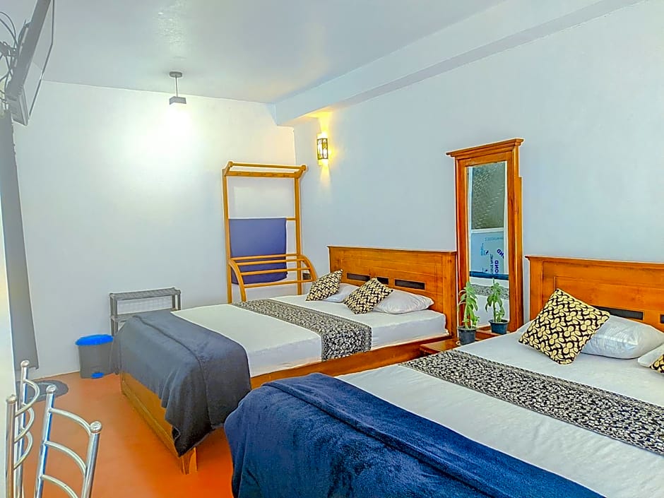 The hotel offers a variety of room types including Family Rooms with Private Bathroom, Triple Rooms with Bathroom, Standard Double Rooms for single occupancy, and Deluxe Family Rooms. The rooms accommodate between 2 to 6 adults and may include a Twin, Queen, or Double bed. All rooms are non-smoking and range in size from 97 to 237 sqft.