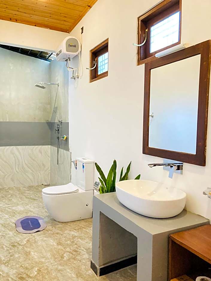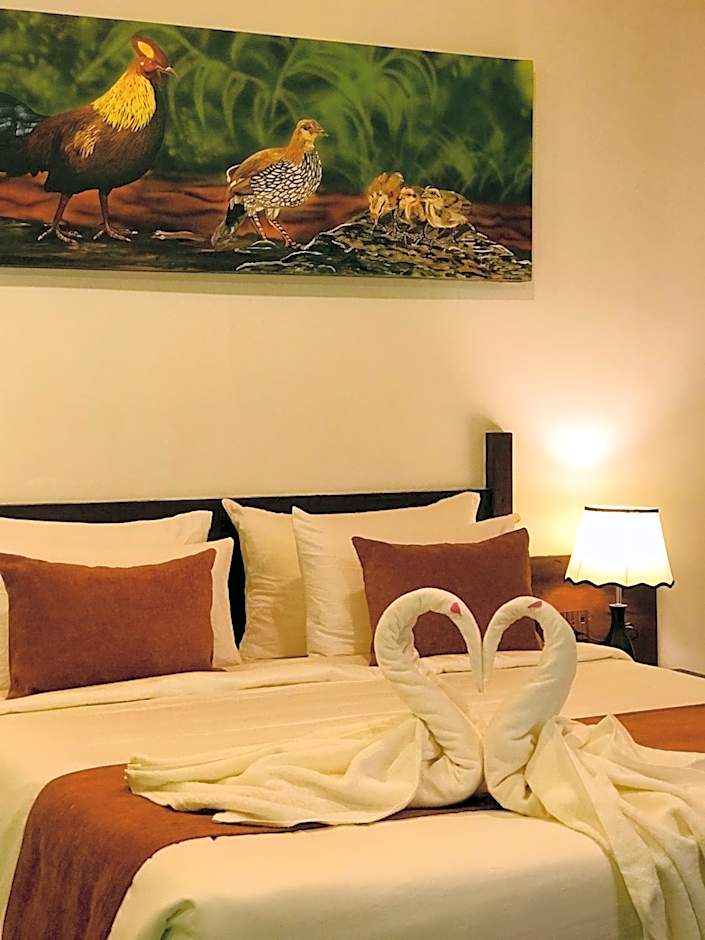 Wow! Wow! Wow What an amazing place this is Looks like you've checked in to a resort There are only, at the time of writing, there are only 6 individual double chalets (they have plans to add some more family rooms down the line You can hear bird songs and peacocks too They gave us lovely towels and this may sound strange unless you have travelled in Sri Lanka and realise that the towels aren't always great (in fact usually aren't) so we appreciated them even more after being in other guest houses The swimming pool is lovely and the pool towels are really good quality as well The rooms are large but with very little storage and the rooms don't have a fridge but you can store your items in their fridge We booked with breakfast but had dinner here all the nights we were here too. The price is similar to places outside and here the quality is great and prepared to your liking The manager would be waiting for you with your keys when you came back which was above and beyond The whole property is beautifully done up with only 6 chalet rooms. The price is great so come and stay here and feel like you are in a resort