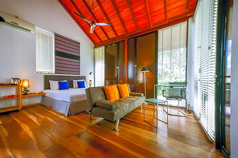 This wooden cabana has a private terrace with garden and sea views and a seating area. The attached bathroom comes with hot water shower, 2 beach mats, 2 lie lows for the garden. Extra beds are not available for this room type.