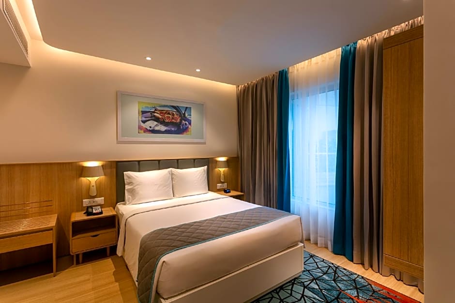 Boendealternativen sträcker sig över ett spektrum, från Junior Suite på 377 sqft till olika suitekonfigurationer på cirka 441–442 sqft, samt Standardrum på omkring 215–216 sqft. Vissa sviter erbjuder balkonger eller pentry, och rökfria rum finns tillgängliga. Moderna bekvämligheter som ljudisolering och luftkonditionering bidrar till återhämtning och vila efter en dag i staden.