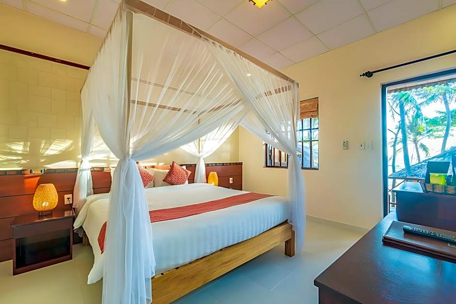 Gästrummen har gratis toalettartiklar och enkel åtkomst via hiss, där övervåningarna nås med hiss. Balkonger eller terrasser erbjuder trädgårds- eller vattenutsikt och kompletterar en luftig miljö bara några steg från sanden. Adressen ligger precis på Tran Hung Dao Street, vilket gör den privata stranden och trädgårdsmiljön lättillgängliga för en lekfull, solfylld vistelse.