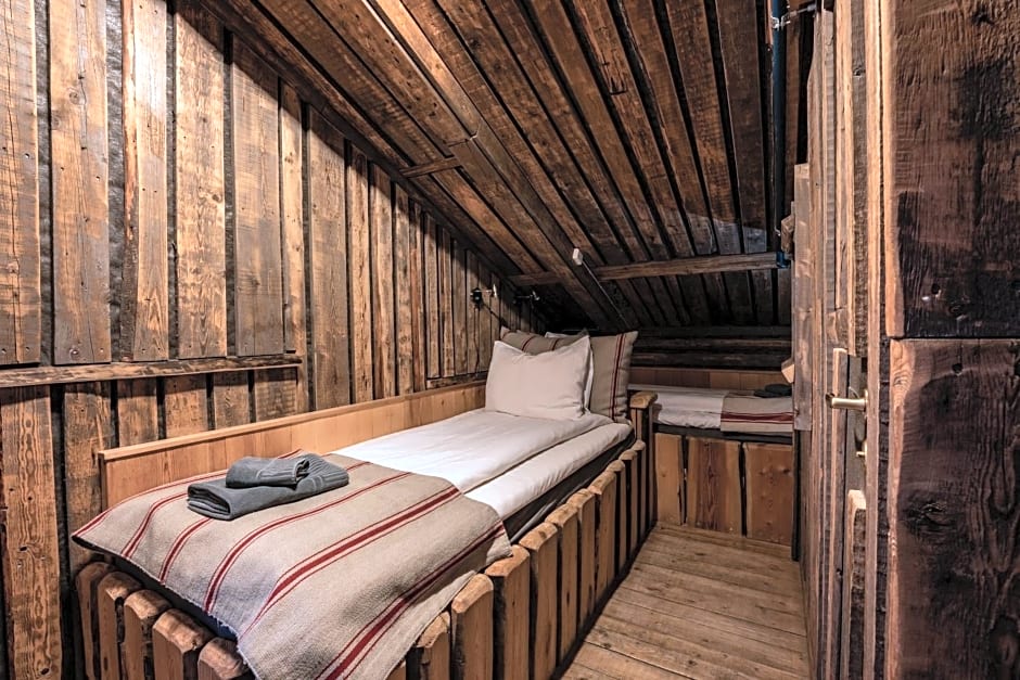 The rooms are decorated in traditional trapper style with driftwood, sealskin and slate. The room is set up with 2 single beds. All rooms have private bathrooms.