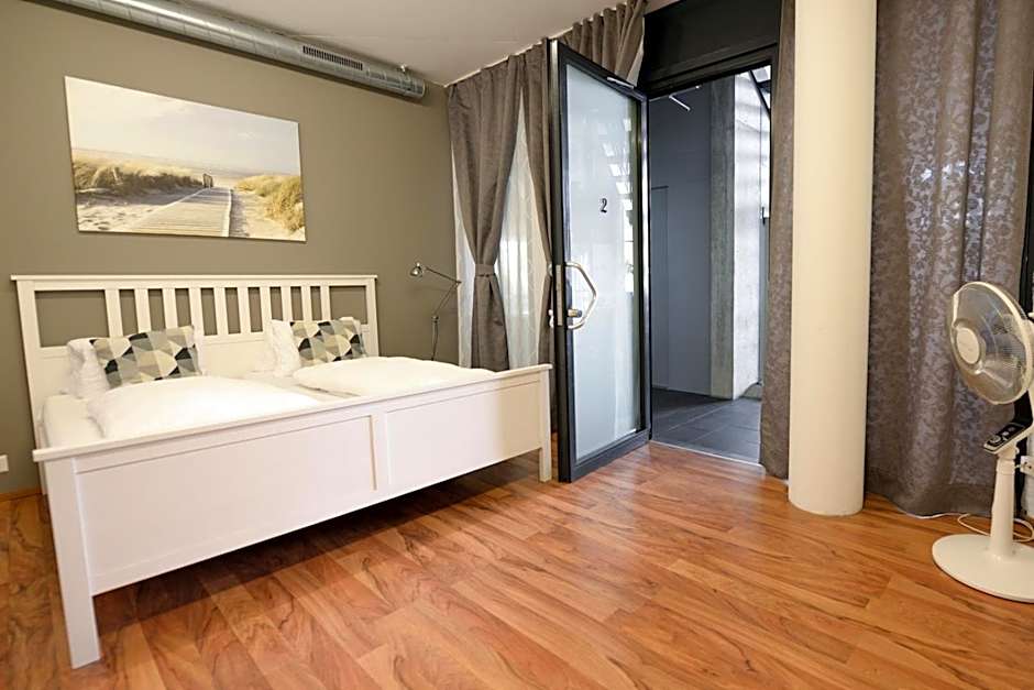 A diverse lineup of room types accommodates groups of any size. Apartment, Single Use, Groundfloor — 657 sqft; Accommodates 6 adults, 2 children; Beds: 1 Sofa Bed, 1 King size bed, 3 Twin beds. King Room, Private Bathroom — 323 sqft; Accommodates 2 adults; Bed: 1 King size bed. Studio Apartment — 269 sqft; Accommodates 2 adults, 1 children; Beds: 2 Twin beds. Double Room — 161 sqft; Accommodates 2 adults, 1 children; Beds: 1 King size bed. Apartment, Groundfloor — 484 sqft; Accommodates 2 adults, 1 child; Beds: 1 Queen size bed, 3 Bunk beds. Payment options include Cash, Mastercard, Visa, and EC-Card. Free private parking is available on site.