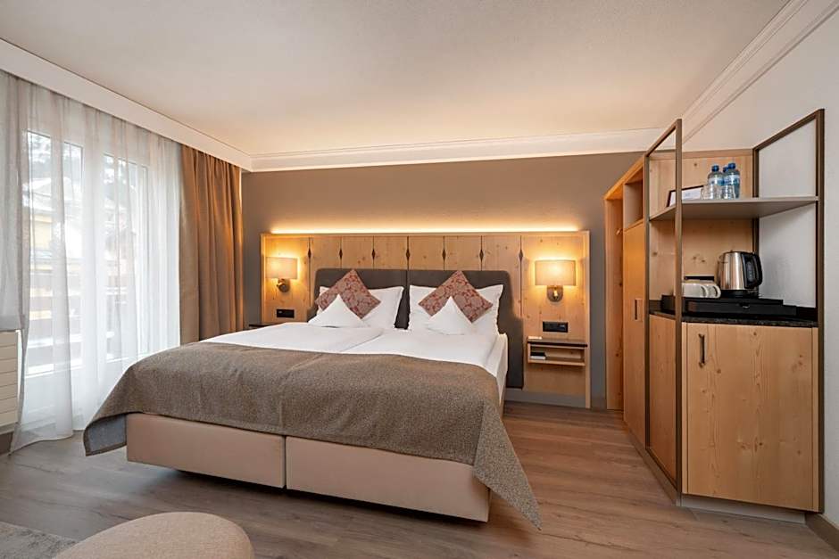 Zimmer, Doppelbett, Bergblick